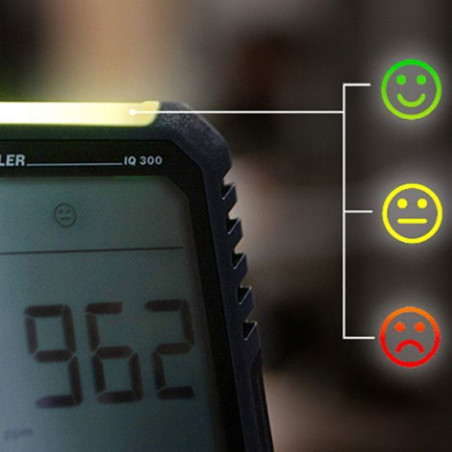 Prístroj Wöhler IQ 300 meria obsah CO2, teplotu, vlhkosť vzduchu a teplotu rosného bodu. Zobrazuje aktuálne hodnoty a ich vývoj. Pokiaľ je prekročená hraničná hodnota, prístroj vydá jasné varovanie zvukovým signálom. Je preto ideálny pre hodnotenie vnútornej klímy a stavu vetrania v obytných miestnostiach, školách , zdravotníckych zariadeniach a všade tam , kde sa nachádza väčší počet ľudí v uzavretých priestoroch..
